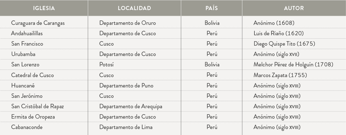 Tabla 1. Iglesias andinas con escenas del Juicio Final (Gisbert & de Mesa 2010: 27). Table 1. Andean churches featuring scenes of the Last Judgement (Gisbert & de Mesa 2010: 27).
